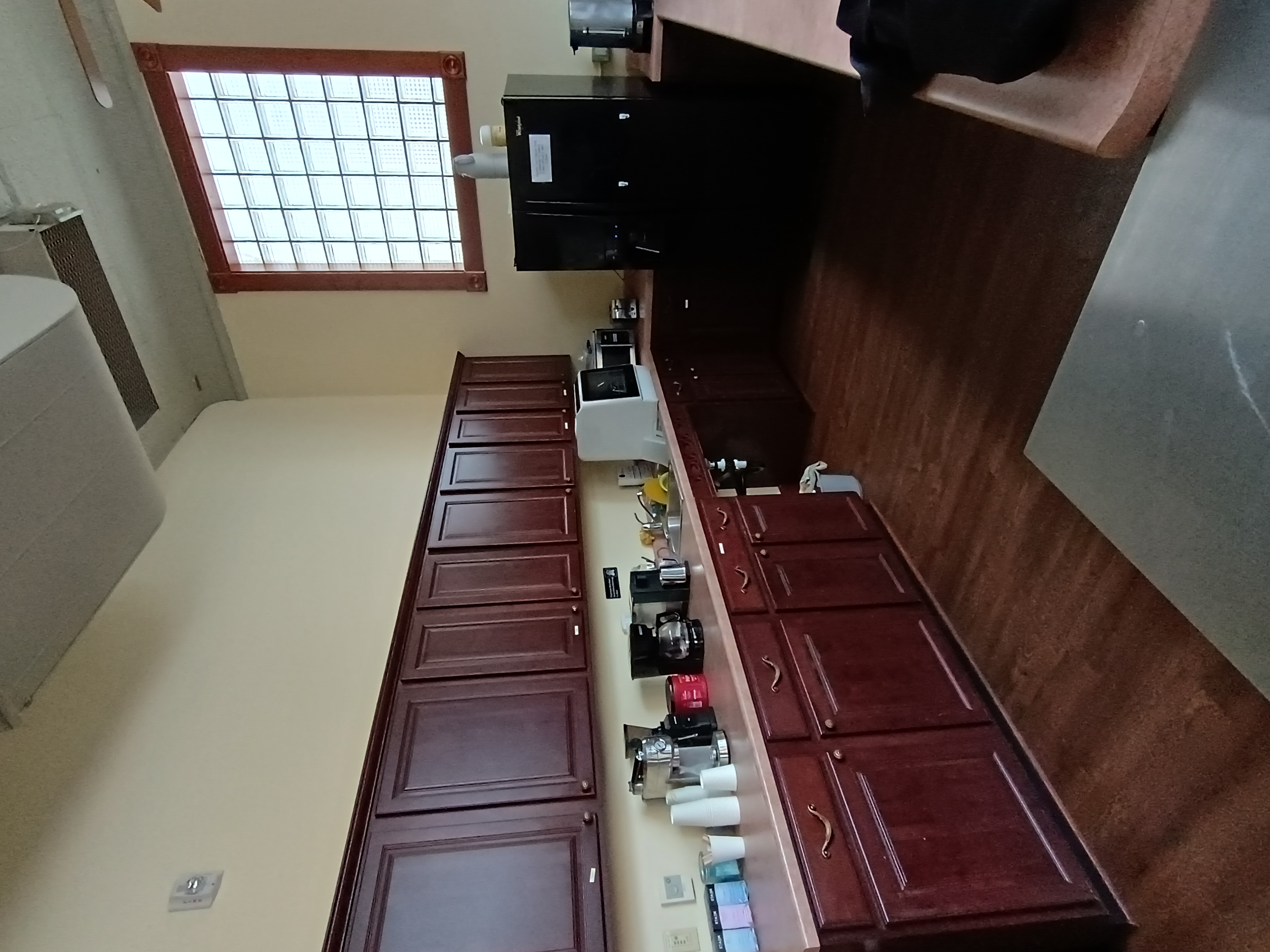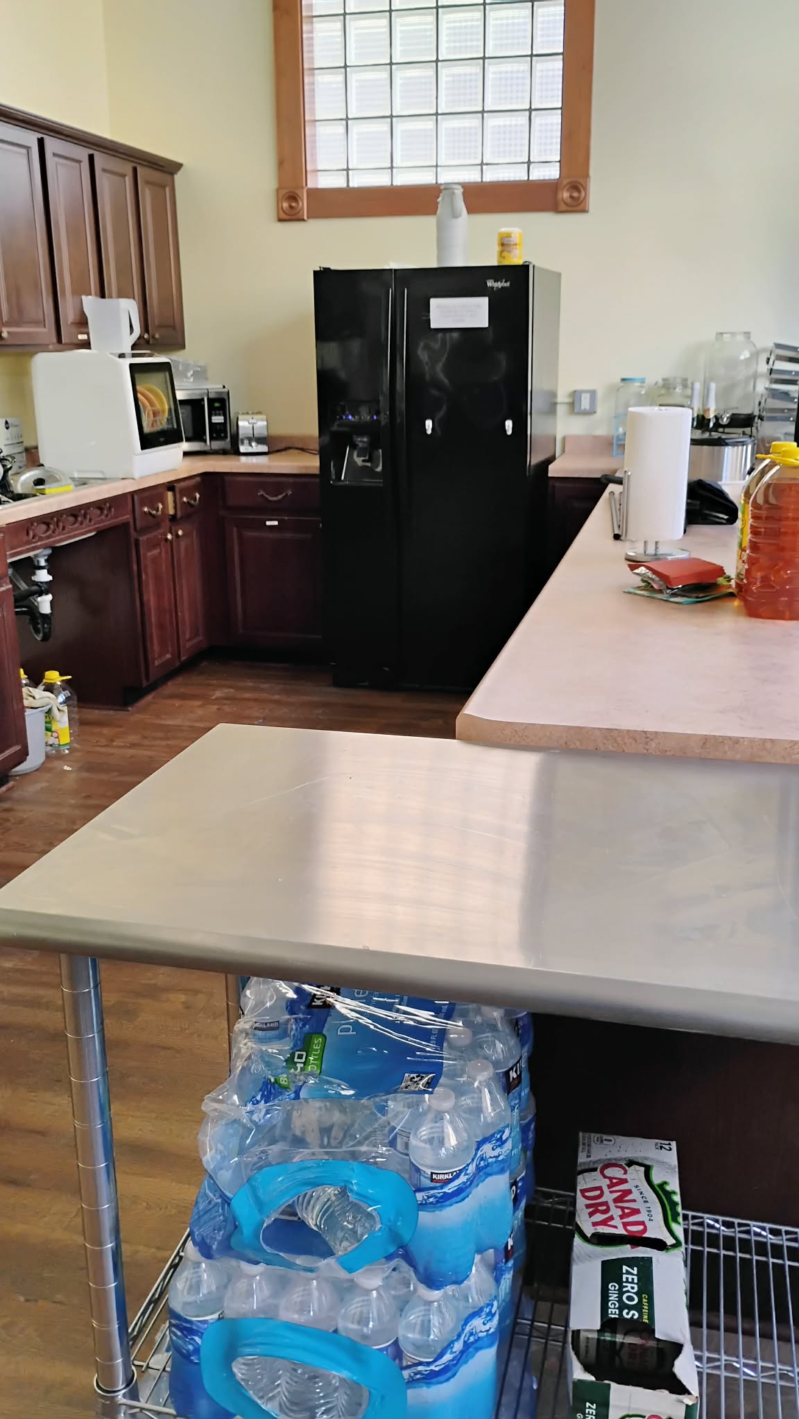 Our kitchenette offers a fridge, coffee pot/coffee urn, sink, counter space and island.